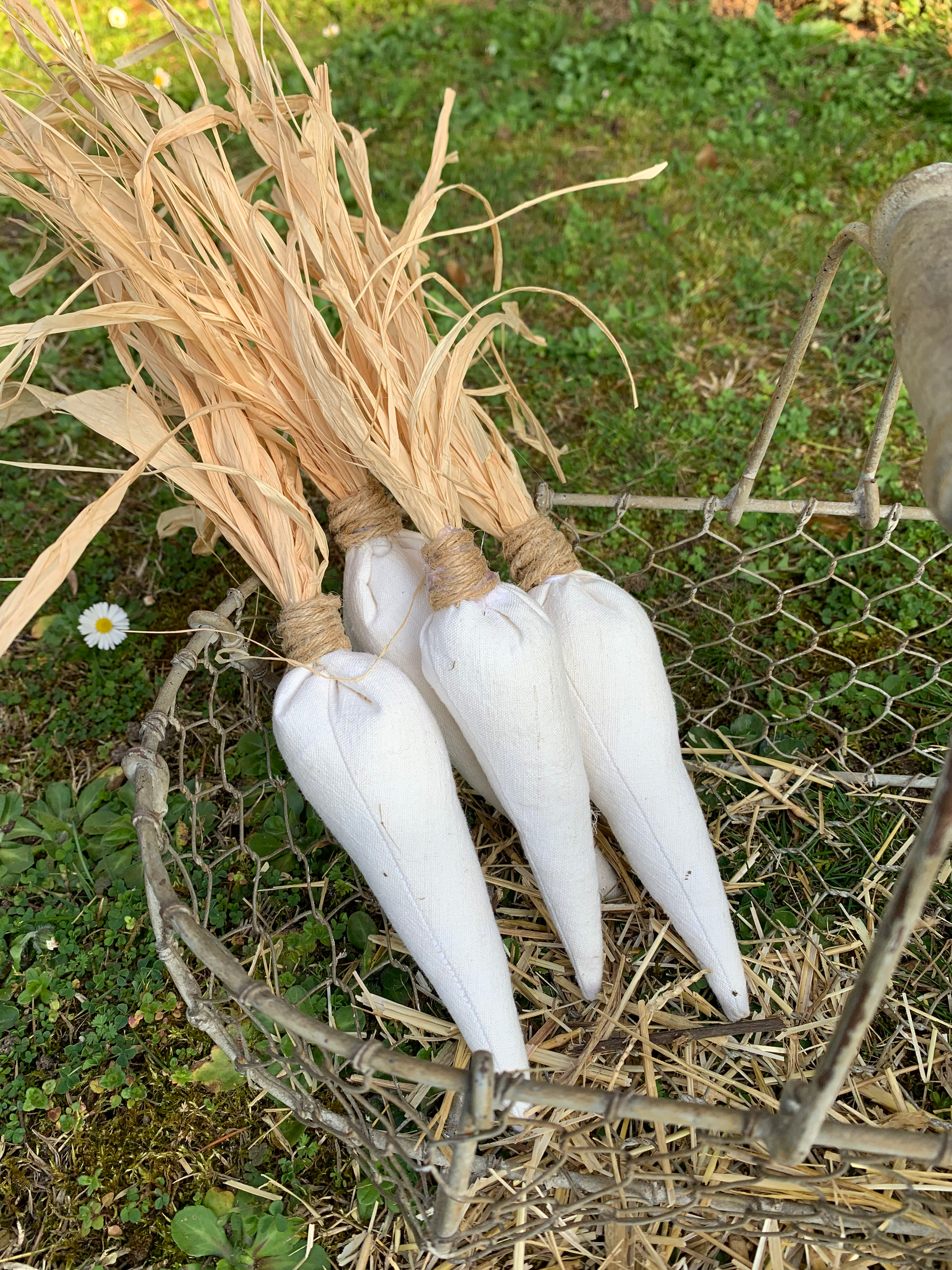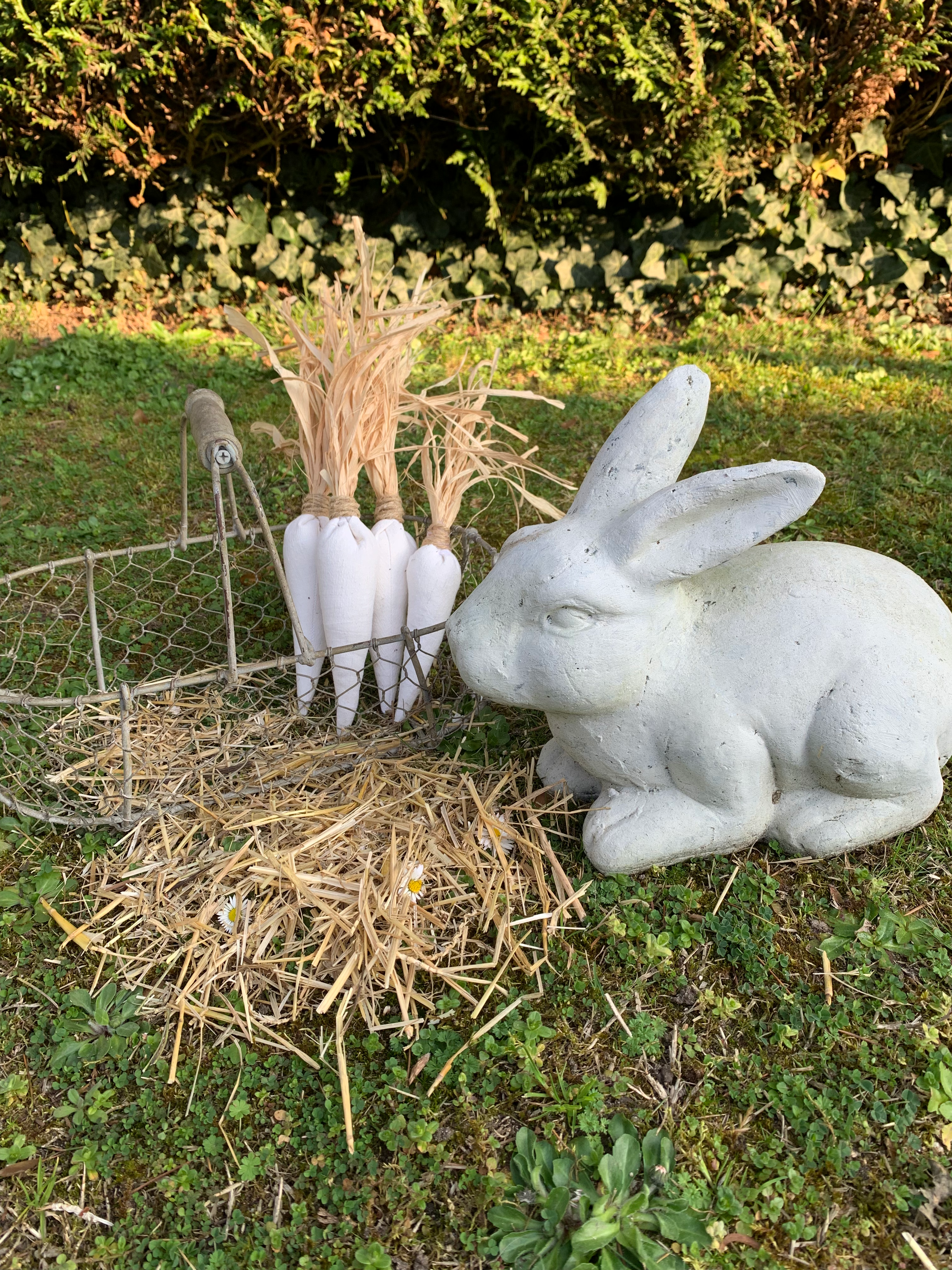Ajoutez une touche originale et charmante à votre décoration de Pâques avec cette carotte en linge ancien et raphia. Parfaite pour créer une ambiance festive et printanière, elle apportera une note de douceur et de rusticité à votre intérieur.