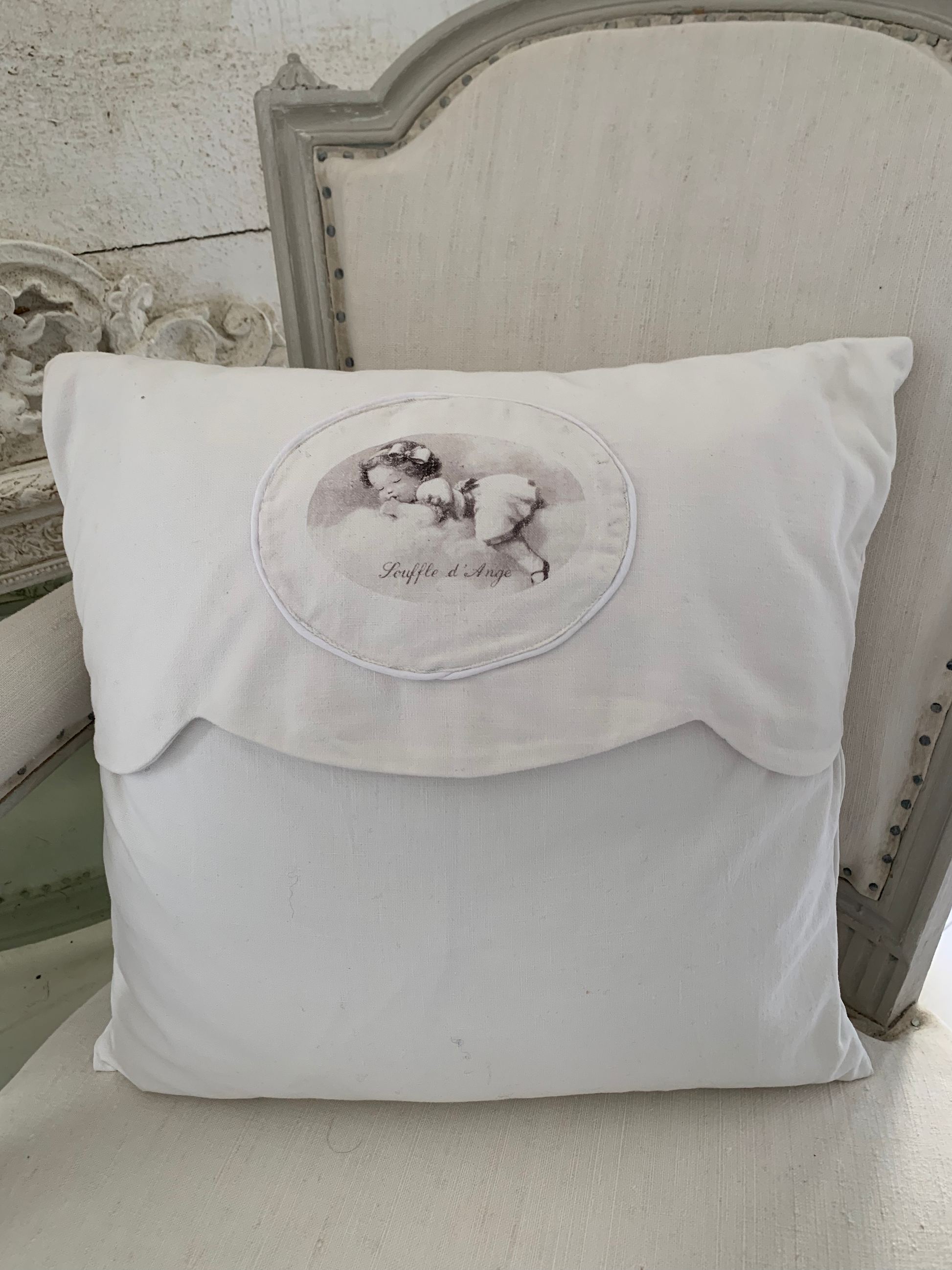 Ce coussin en linge ancien, à la jolie découpe festonnée et agrémenté d’une impression « souffle d’ange », rêve de se poser dans la chambre d’une ravissante petite fille. Sa finition portefeuille et le coussin intérieur inclus assurent un confort optimal et une esthétique délicate.