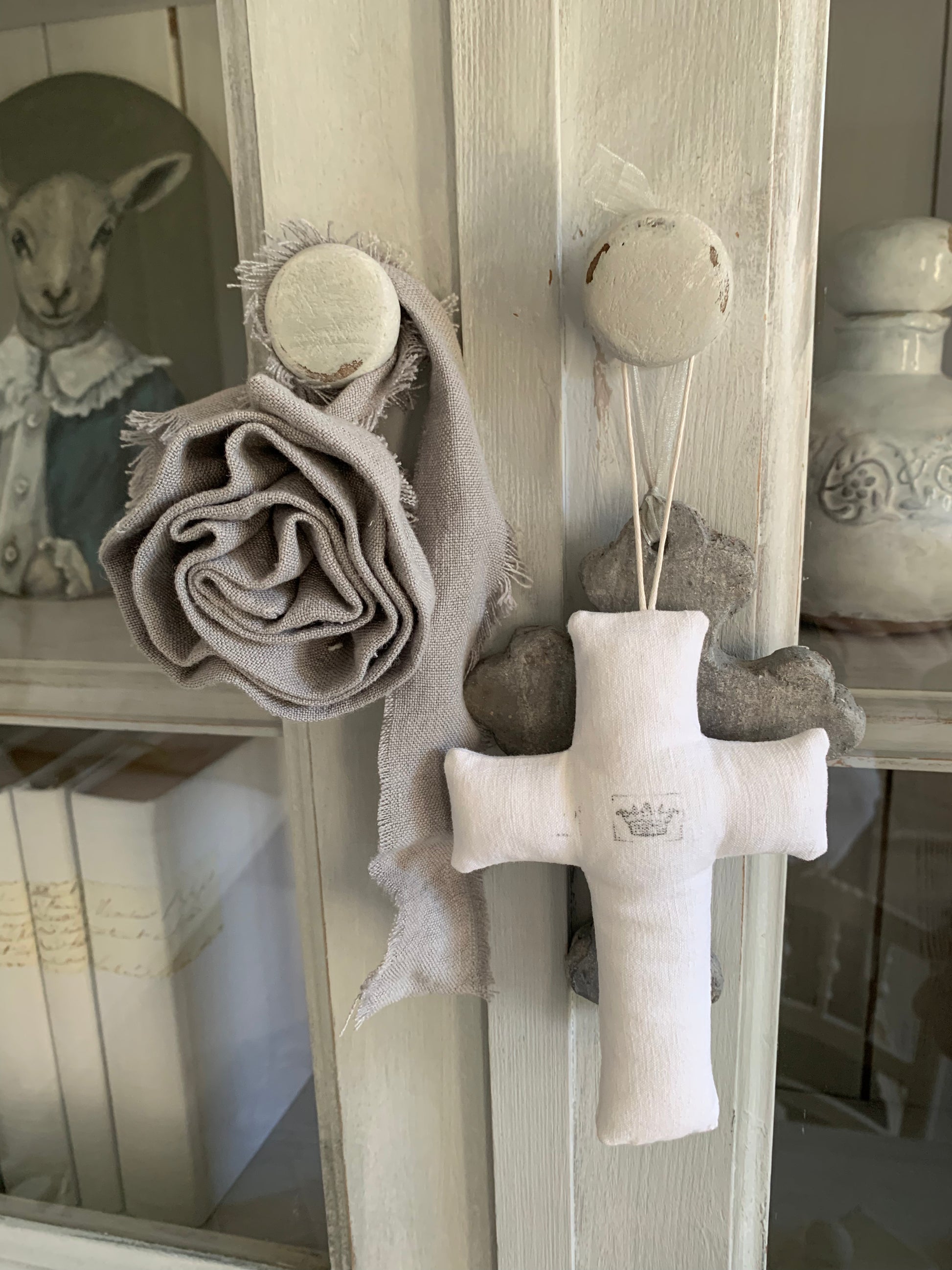 Apportez une touche de charme authentique à votre intérieur avec cette croix en lin ancien. Fabriquée dans une matière noble et intemporelle, cette croix est idéale pour embellir poignées de porte, placards ou votre sapin de Noël. Avec son design sobre et raffiné, elle s’intègre harmonieusement dans une décoration rustique, naturelle ou minimaliste.