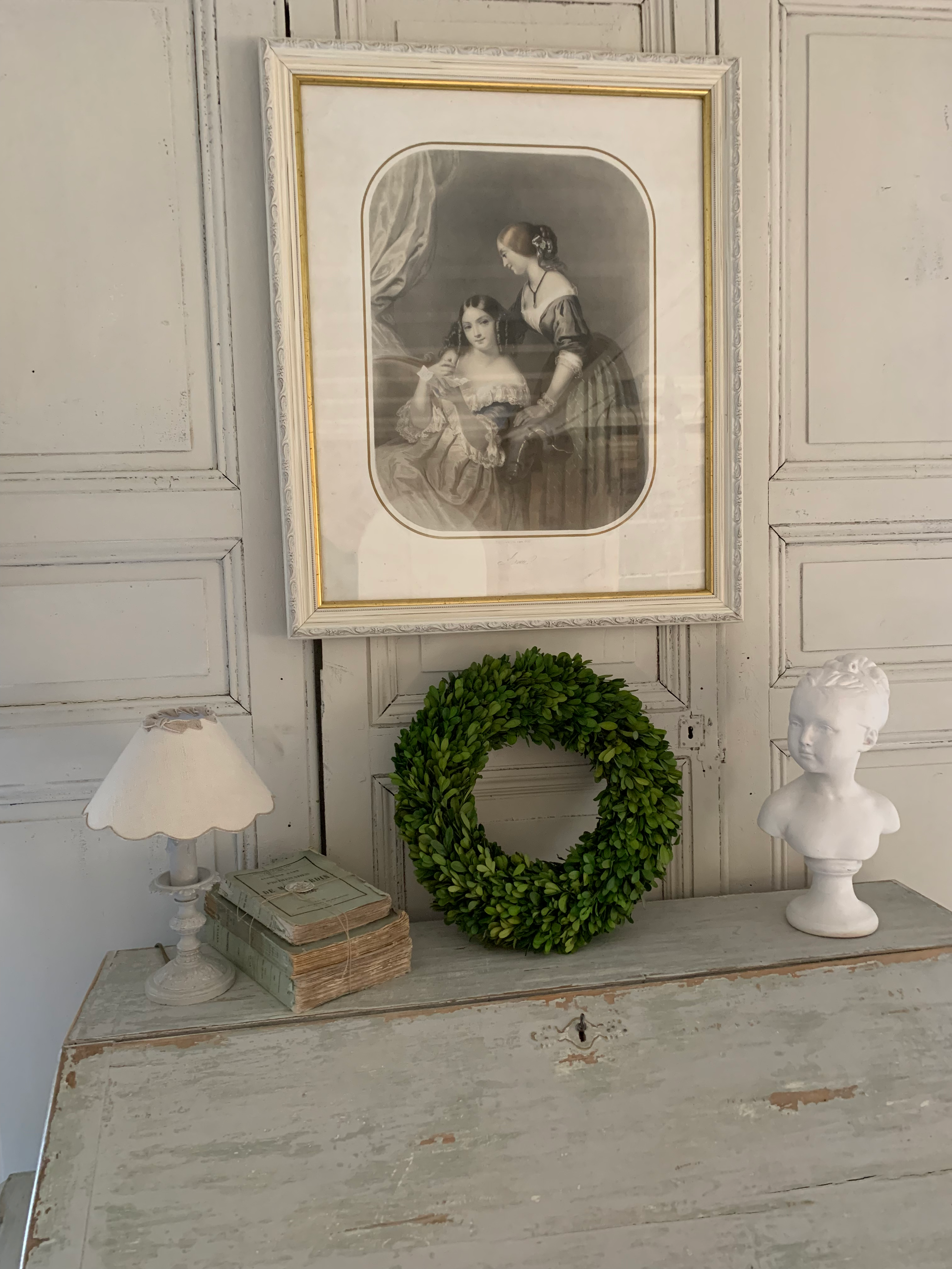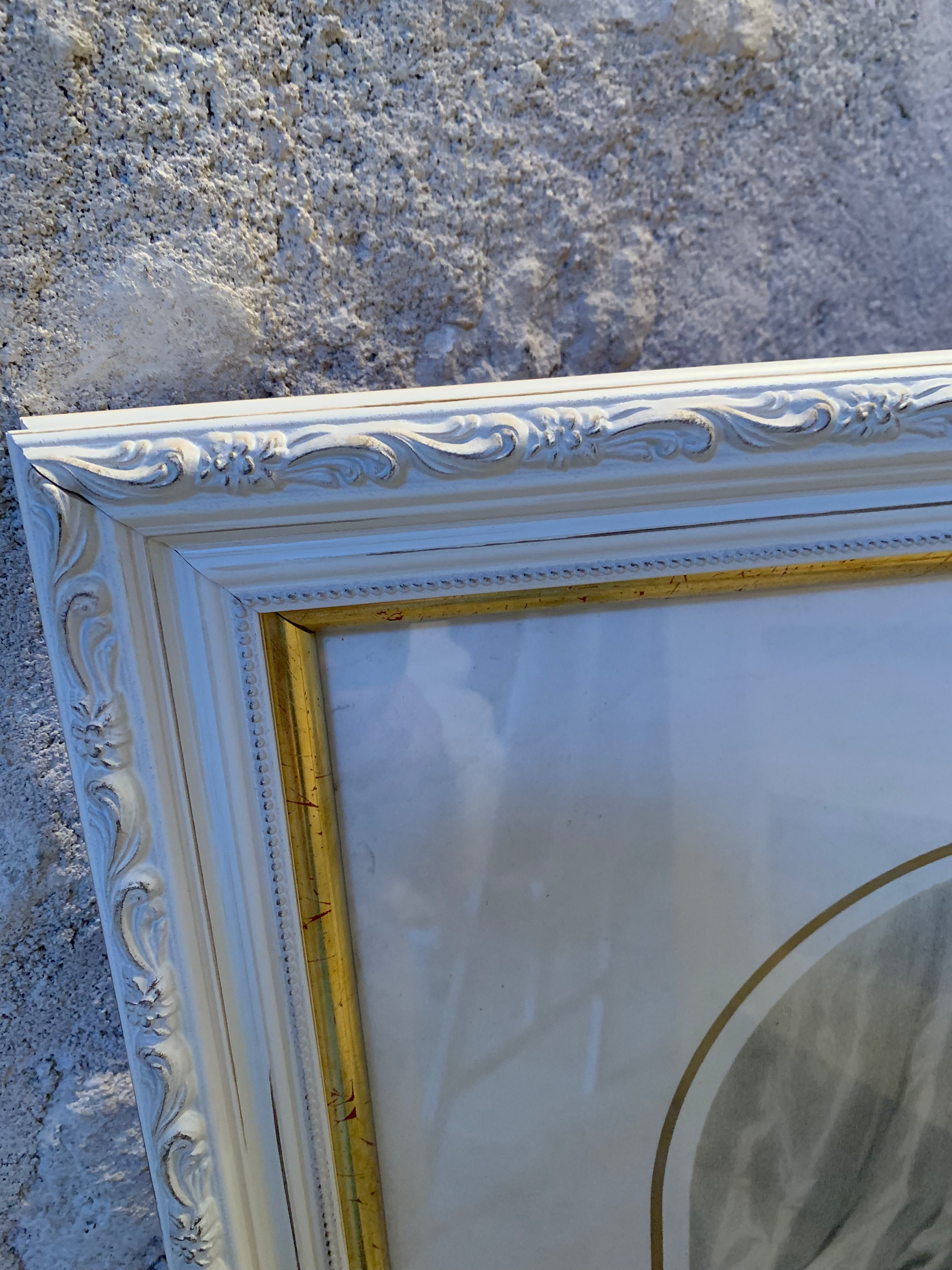 Après être passée dans les mains d’une restauratrice de tableaux qui a redonné de l’éclat aux couleurs, redoré le contour et retiré les taches laissées par le temps, cette jolie gravure du XVIIIème siècle a retrouvé toute sa superbe. Ces gracieuses et douces jeunes femmes apporteront une touche raffinée à votre intérieur.